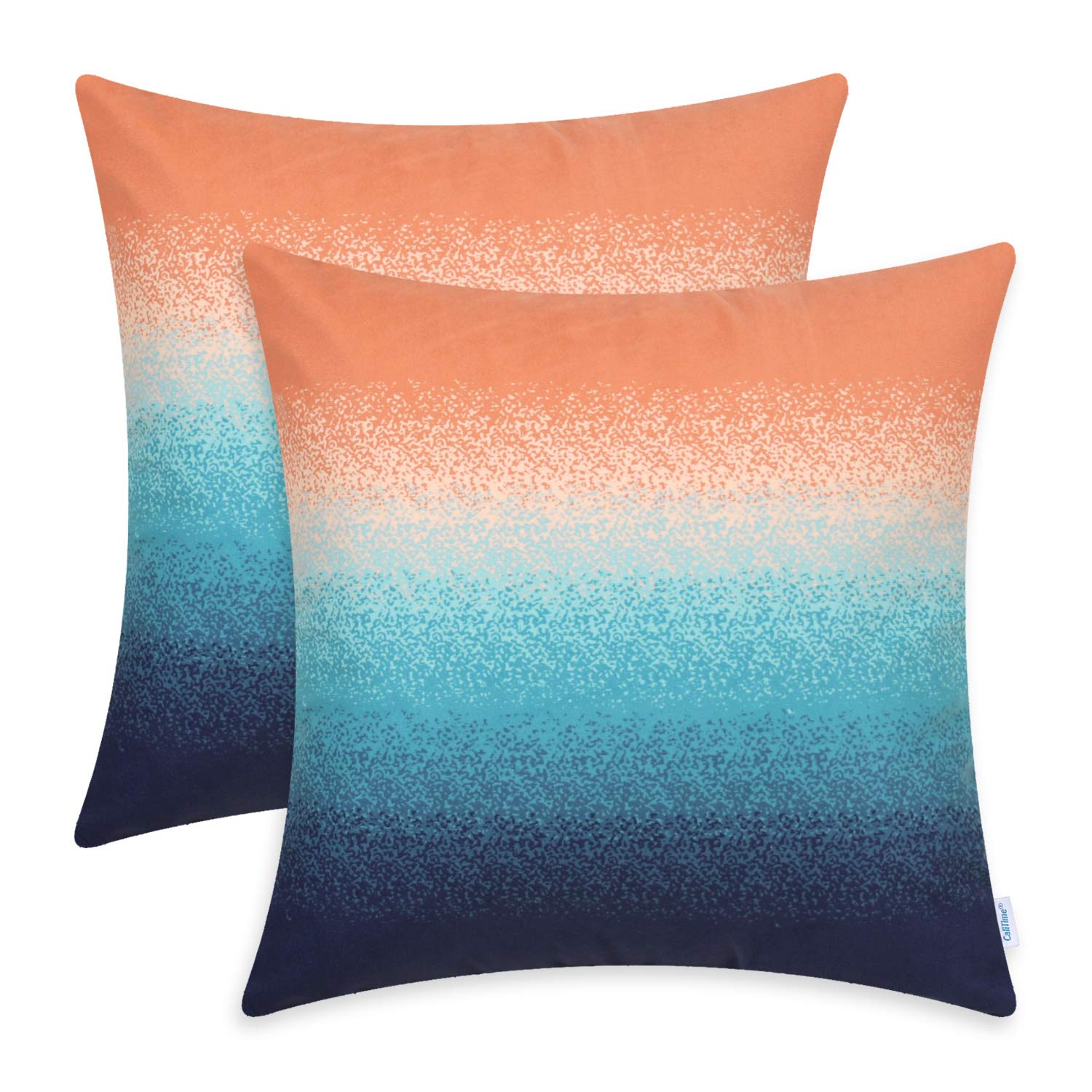 Amazon Com Calitime Pack Of 2 Cozy Fleece Throw Pillow Cases Covers For Couch Bed Sofa Farmhouse Modern Gradient Ombre Rainbow Stripes 18 X 18 Inches Burnt Orange To Dark Navy Home Kitchen