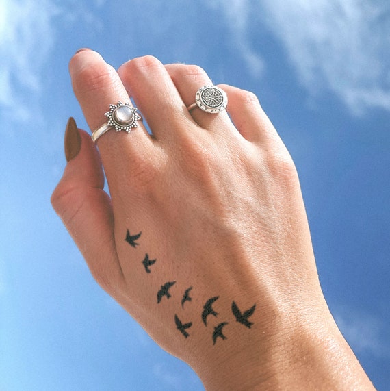 Semi Permanent Tattoo Flying Birds Lasts Up To 2 Weeks Etsy